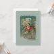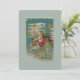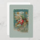 Hier kommt der Weihnachtsmann! Er lenkt seine phantastische Flugmaschine durch den Nachthimmel. Sterne, Raster und extravagante Dekorationen bedecken das Flugzeug und seine Ladung an wunderschönen Spielzeugen für den Weihnachtsmorgen. Das restaurierte Bild einer Viktorianischen Postkarte weist einen frostigen Hintergrund, goldene Akzente und schöne, helle Farben auf. Es ist gerahmt in Ziern und Ziergegenständen mit einem Weihnachtsdorf im Hintergrund.