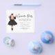 Budget Modern Script Graduation Party Einladung - mit einem schönen Absolvent mit ihrem Diplom und einem Strauß rosa Rosen. Die Einladung beinhaltet auch eine hübsche, moderne Schrift-Typografie. Die Einladung wird in einer dünnen goldenen Grenze gerammt.