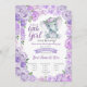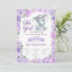 Ein süßes kleines Mädchen ist auf dem Weg! Personalisierte doppelseitige Lila Rose und Graue Elefant/Peanut Babydusche Einladung zum Feiern der Ankunft eines neuen Kindermädchens!
