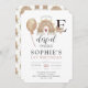 Niedliche whimsical Kleine vermisst ONEderful Wasserfarbe boho geflochtene Regenbogenform mit kleiner Herzillustrierung, Mädchen's 1. Geburtstagseinladung. Rosa Terrakotta und schwarz. Wählen Sie aus verschiedenen Eckstilen für die Form Ihrer Einladung. Regenbogen und Herzmuster auf der Rückseite der Einladung.