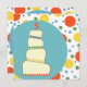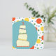 Eine individuell gestaltbare Geburtstagsfeier mit einem Hintergrund jugendlicher Orange-, Grün-, Gelb- und Blautöne auf Vorder- und Rückseite. Vorderseite zeigt ein weißes Geburtstagskuchen mit vier abgerundeten Kanten über einem großen blauen Punkt. Der Kuchen ist mit bunten Punkten geschmückt. Anpassen der Zahl oben auf dem Kuchen. Personalisieren Sie den Rücken mit Details Ihrer Gelegenheit.