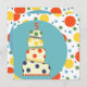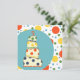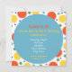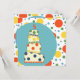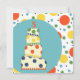 Eine individuell gestaltbare Geburtstagsfeier mit einem Hintergrund jugendlicher Orange-, Grün-, Gelb- und Blautöne auf Vorder- und Rückseite. Vorderseite zeigt ein weißes Geburtstagskuchen mit vier abgerundeten Kanten über einem großen blauen Punkt. Der Kuchen ist mit bunten Punkten geschmückt. Anpassen der Zahl oben auf dem Kuchen. Personalisieren Sie den Rücken mit Details Ihrer Gelegenheit.
