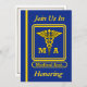 Diese blaue und goldene Einladung ist auf der Vorderseite mit dem Schild des pensionierten medizinischen Assistenten dekoriert. Sie können diese Karte anpassen, indem Sie Ihre Daten in die dafür vorgesehenen Felder eingeben.