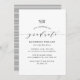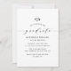 Individuell anpassbare Graduierungsparty Einladung mit schwarz minimalistischem Skript, Typografie und Streifen Muster. Diese schlichte und dennoch elegante Einladung zum Abschluss ist vollständig anpassbar. Weitere Farben und passende Elemente sind verfügbar.