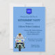 Einladung zum Ruhestand eines pensionierten Polizeibeamten. Design verfügt über ein Polizeimotorrad und einen Polizeibeamten mit den Worten, Sie sind zu einem Party in Rente eingeladen. Stellen Sie Ihre Initialen der Polizeiabteilung im Abzeichen ganz oben auf der Einladung. Einfach mit Ihren Party-Details anpassen.