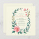 Feiern Sie Ihre Liebe in einem intimen Rahmen mit unserer "zarten Blumenkreideeinladung". Dieses charmante Design zeigt einen wunderschönen ovalen Kranz aus ineinander verwobenem Blattwerk und anmutigen rosa Blume, ideal für eine romantische Mikrohochzeit. Die sanfte, sanfte Ästhetik sorgt für einen herzlichen Empfang Ihrer Liebsten. Wir arbeiten mit Ihnen zusammen, um sicherzustellen, dass jedes Detail perfekt erfasst wird.
