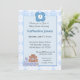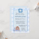 Passen Sie diese monogramm Baby Duscheinladung mit einer Initial- und den Party-Details an. Einladend ist Design für Jungen mit Babyblöcken mit dem Wort Junge. Niedlicher Teddy und Katze sitzen auf den Blöcken.