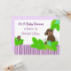 Ein niedlicher lila Streifen über den Boden der Babydusche Einladung. Jungle-Pflanze umgeben diese niedlichen Babyaffen. Passen Sie sich mit Ihren persönlichen Daten an.