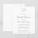Traditionelle und klassische Braudusche mit schwarz-weißem Budget mit einem Hochzeitsgrab mit dem Monogramm des Ehepaares in einem Kranz und Akzent Wörter in einem Drehbuch / Kalligrafie. Diese schlichte und dennoch elegante Einladung eignet sich hervorragend für ein formelles Brautparty.