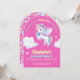 Einladung zu einer magischen Geburtstagsparty mit einem bezaubernden Einhorn mit Flügeln in den Wolken auf einem Regenbogenboden.