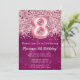8. Geburtstag Einladung Girly Magenta und Pink Glitzer 8. Geburtstag Einladung für ein 8-jähriges Mädchen mit modernem Drehbuch und lustigen Folienballons.