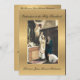 Eine traditionelle katholische Ordination des Heiligen Priestertums mit einer wunderschönen traditionellen katholischen Vorstellung eines Priesters, der den Eucharisten auf dem Altar während der Weihung an das Heilige Gotteshaus der Messe anbietet. Das Bild der gesegneten Mutter ist im Hintergrund zu sehen. Der Rücken ist ein Goldschimmer. Alle Texte und Schriftart können geändert werden.