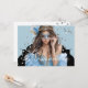 Dieses moderne 12x18-Einladungs-Modell wird in einem blauen und schwarzen Farbschema mit einer jungen Dame gezeigt. Sie können dies anpassen, indem Sie Papier, Farben auswählen und Ihren eigenen Text mit dieser Vorlage hinzufügen. Sie können die Damenarbeit auch mit Ihrem eigenen Foto ersetzen. Lizenzierte Bilder
