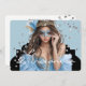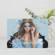 Dieses moderne 12x18-Einladungs-Modell wird in einem blauen und schwarzen Farbschema mit einer jungen Dame gezeigt. Sie können dies anpassen, indem Sie Papier, Farben auswählen und Ihren eigenen Text mit dieser Vorlage hinzufügen. Sie können die Damenarbeit auch mit Ihrem eigenen Foto ersetzen. Lizenzierte Bilder