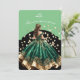Dieses moderne 12x18-Einladungs-Modell wird in den Farben Grün und Schwarz mit einer jungen Dame gezeigt. Sie können dies anpassen, indem Sie Papier, Farben auswählen und Ihren eigenen Text mit dieser Vorlage hinzufügen. Sie können die Damenarbeit auch mit Ihrem eigenen Foto ersetzen. Lizenzierte Bilder