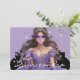 Dieses moderne 12x18-Einladungsformat wird in einem lila und schwarzen Farbschema mit einer jungen Dame gezeigt. Sie können dies anpassen, indem Sie Papier, Farben auswählen und Ihren eigenen Text mit dieser Vorlage hinzufügen. Sie können die Damenarbeit auch mit Ihrem eigenen Foto ersetzen. Lizenzierte Bilder