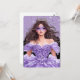 Dieses moderne 12x18-Einladungsformat wird in einem lila und schwarzen Farbschema mit einer jungen Dame gezeigt. Sie können dies anpassen, indem Sie Papier, Farben auswählen und Ihren eigenen Text mit dieser Vorlage hinzufügen. Sie können die Damenarbeit auch mit Ihrem eigenen Foto ersetzen. Lizenzierte Bilder