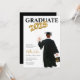 Abschluss Einladung für Typ Abschlussfeier. Männliches Portrait zeichnend Absolvent in einer schwarzen Mütze und Ziegen, braunes Haar und Gold Klasse von 2025 Ballons. Personalisieren Sie alle Party-Details Ihres Abschlusses für eine einmalige Abschluss-Einladung.