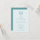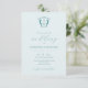 Rett auf Papier und Geld mit dieser monogramm Hochzeitseinladung mit QR-Code. Dieses schlichte und dennoch elegante Design lädt Sie ein zu einer kalligraphischen Typografie mit einem klassischen Sans-Schriftart in Türkisblau über einem blass Blau. Ein elegantes Wappen umrahmt die Initialen von Braut und Bräutigam. Die Karte kehrt zu einer soliden türkisfarbenen Farbe zurück, mit Ihrem QR-Code für Hochzeiten und Platz für weitere Details. Alle Farben sind anpassbar. Für mehr Geld Hochzeit lädt www.zazzle.com/dotellabelle ein