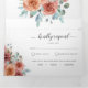 Machen Sie alle Details für Ihre Hochzeit mit diesem alles in einer eleganten Blumen-Einladung, ohne zusätzliche Beilagen oder uAwg! Im mittleren Innern können Sie Ihre Einladungsdetails darstellen, während Sie im oberen Bereich Empfang, Unterkunft, Transport, Geschenke, Website-Details hinzufügen können, die Ihnen gefallen. Unten können die Gäste einfach die UAWG Postkarte abschneiden und in der Post platzieren! Bearbeiten Sie Informationen in Textfeldern oder wählen Sie Anpassen, um Änderungen am Bildschirm vorzunehmen. Exquisite, elegante Blumendetails in allen Bereichen mit Blume und Blattwerk in rot, staubige Rose, Elfenbein, Pfirsich, trübe Schieferblau, Minzblau, Grau und Salbei. Teil unserer "Ethereal Hochzeit und Veranstaltungen Sammlung".