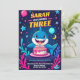 Lassen Sie sich mit dieser bezaubernden Geburtstagseinladung zum Thema Babyhaie von einem ganz besonderen Tag verwöhnen! Mit einem fröhlichen Kuchen, farbenfrohen Unterwasserelementen und einem zauberhaften Nachthimmel ist dieses Design perfekt für Kinder und Kleinkinder, die den Ozean lieben. Durch den benutzerdefinierbaren Text können Sie Ihre Party leicht anpassen. Ideal für 1. bis 5. Geburtstagsfeiern!