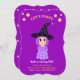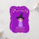 Niedlicher Geburtstag Einladung mit Sternmuster auf königlich lila Hintergrund auf der Rückseite. Ideal für Geburtstage und Halloween-Party. Alle Texte und Zahlen sind personalisiert.