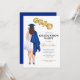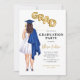 Weibliche Abschluss Einladung und große Frauenportrait zeichnend weißes Kleid, blaue Kappe und Ziege, lange braune Haare. Die Buchstaben GRAD in Imitats Gold-Folie Stil Ballons. Personalisieren Sie mit den Details der Graduiertengruppe, und dem Graduiertenjahr und dem Schulnamen. Bitte senden Sie mir eine Nachricht für passende Artikel.