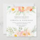 Unsere schicke, blumengeschmückte Einladung in einem einzigartigen quadratischen Format umrahmt Ihre Hochzeitsdetails mit einem oberen und unteren Rand von lackierten Aquarellfarben-Blume und Blattwerk in sanften Pfirsichfarben und Pastellgrün. Koordiniert mit unserer Hochzeit- und Veranstaltungskollektion von Airy.
