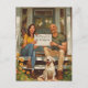 Diese individuell gestaltbare Postkarte ist ideal, um Ihre Lieben zu Ihrer Zuhause einzuladen oder ihnen die besten Wünsche zu schicken! Dieses Design umfasst ein Paar und ihren Hund sitzen auf der Veranda ihrer Zuhause. Das Paar ist glücklich und hält ein Banner mit einer anpassbaren Nachricht. Es gibt auch Frühlingsblumen.