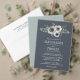 Romantische und dennoch zeitgenössische Blumen-Hochzeitsinspektion mit einem Blume cremefarbener Anemonenstücke, flankiert von Eukalyptusstiteln und Grünpflanzen, in schieren Aquarellen auf einem rauchblauen grauen Hintergrund. Fügen Sie Ihre Hochzeitsdetails in chic kursiv und Blockschrift in klassisch weiß. Die Karte kehrt zu kontrastierendem staubigen Salbei-Grün zurück. Brauchen Sie Hilfe bei der Formulierung oder Anpassung? Kontaktieren Sie mich über den Link "Diesen Designer Gefragt" auf dieser Seite.