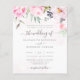 Eine elegante blumengeschmückte Hochzeitsveranstaltung mit blütenrosa Aquarellbäumen und Rose mit moderner handgeschriebener Kalligraphie. Dieses wunderschöne Design ist ideal für Hochzeitsfeiern im Frühjahr und Sommer mit einem romantischen oder Vintagen Thema.