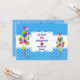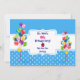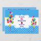 Einladung zum Geburtstag eines Kindes: farbenfrohe Ballonbänder und Ribbons-Motiv/weiße Punkte und Rahmen auf blauem Hintergrund/weißliche Typografie-Personalisierung