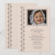 Eine charmante Foto-Einladung, in einer weichen Bufffarbe, mit zwei Reihen von verknüpften querartigen Bändern in Stahlgrau. Das Foto ist auch in Stahlgrau gerahmt. Das vorgestellte Kreuz kann an einen beliebigen Ort gezogen, größer oder kleiner gemacht oder eliminiert werden.