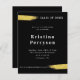 Holen Sie sich ein großartiges Set von Einladungen für einen guten Preis mit diesem Budget Black and Gold Abschluss Einladung. Das Design ist ein sauberer schwarzer Hintergrund mit Details, die durch zwei vergoldete Glasmalereien hervorgehoben werden. Sehr minimalistisch, elegant laden für den Absolvent in Ihrem Leben ein!