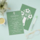 Eine preisgünstige grüne Einladung mit einem weißen Blumenkreuz für Taufe oder Taufen. Personalisieren Sie die Details und ändern Sie die Taufe zu Taufen, wenn gewünscht. Teil der Sammlung von Floral Cross.