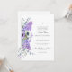 Invitación de boda cristiana All-in-One en español mit blumen moradas elegantes, caligrafía y una cruz cristiana.