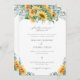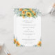 Invitación de boda cristiana sencilla y elegante escrita en español con flores girasoles rusticas, verdor y una cruz cristiana para una profración religiosa en la iglesia. Incluye el versículo bíblico Efesios 5:31 (Y los dos serán una).