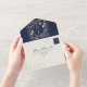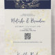 Mit dieser eleganten, marineblauen Monogram All-in-One Hochzeitseinladung machen Sie Ihre Hochzeitsplanung mühelos. Mit einem eleganten marineblauen Monogramm mit zarten blumigen Akzenten in Gold ist diese Einladung zugleich stilvoll und funktional. Das All-in-One-Design beinhaltet eine abnehmbare RSVP-Karte und ein atemberaubendes Foto für eine persönliche Touch. Ideal für Hochzeitsfeiern, rustikale oder elegante Hochzeiten.