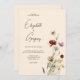 Boho Wildblume Hochzeitseinladung mit wunderschönen, eleganten Aquarellfarben-Wildblumen und skurrilen Schriftzeichen. Einfaches und minimales Design.