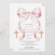 Einladung von Bow und Pearls Heilige Kommune | Elegante Erstkommunion Einladung für Girls | Namenskarte | Rosary und Ribbon laden ein. Digitales Download, bearbeitbare Vorlage, Bow-Taufe einladen, Bögen und Perlen, Taufe Coquette, Heilige Kommunion, druckbares Taufen, 1. Heilige Kommunion, Mädchenbestätigung, Taufhandy, rosa Bugtaufe, erste heilige Kommunion, Rundfunk und Band