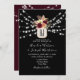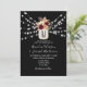 Elegante, moderne, böhmische, rustikale Schwarze Hochzeitseinladung mit Monogramm, wunderschönen, waschfarbenen bordeauxfarbenen Blume in Mason-Glas, Saitenleuchten und trendiger Kalligraphie-Schrift. Ideal für romantische Herbst- oder Winterhochzeiten!