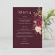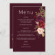 Feiern Sie Ihre Hochzeit oder Ihr Party Ihren Empfang mit Stil und Schönheit mit diesem rosa rot und bordeauxrot Marsala Blumenmenü. Passen Sie Ihre Einstellungen mit Ihren Einstiegsoptionen und Monogramm an. Erhältlich mit weißem, schwarzem, bordeauxfarbenem, rosa und dunkelburgundigem Hintergrund.