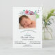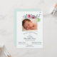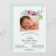 Ein Haufen weicher rosa und grüner Blumen umrahmt das Foto Ihres Babys. Verziert mit einem kleinen Kreuz. Karo in unserem Schwesterladen Pixieprints.com für alle Ihre Einladungen.
