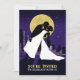 Eine einzigartige grafische Einladung, die die Silhouette einer Braut und eines Bräutigams mit der Skyline der Stadt und den Sternen im Hintergrund zeigt. Stell dich mit dieser poster-artigen illustrativen Hochzeitseinladung heraus! Auf der Rückseite der Einladung erscheinen die Hochzeitsinformationen, auf der Vorderseite werden der Name und das Datum der Braut und des Bräutigams angezeigt.