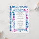 Blaues und rosa skandinavisches Blumenmuster mit Aquarellstruktur. Die Aquamarine und das kristallblaue Blumengesteck sind perfekt für eine Winter- oder Frühjahrshochzeit. Ändern Sie einfach Details und Informationen für Ihre Veranstaltung.