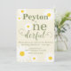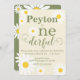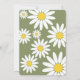 Die hellweißen Gänseblümchen schmücken diese niedliche Einladung zum ersten Geburtstag des Babys. Diese farbenfrohe Karte ist perfekt für Ihr kleines Mädchen geeignet und bietet verstreute weiße Gänseblümchen mit schlauer grüner Typografie mit einem Wild One Thema. Die Rückseite der Karte ist grün mit weißen Molkereien. Personalisieren Sie Name und Party. Dieses skurrile Design ist auf passenden Geburtstagsartikeln erhältlich.