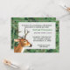 Geburtstagsparty-Einladungen für Hirschjäger mit Blatthintergrund und einem Buckkopf in der Ecke. Machen Sie Ihren Lieblingstag des Hirschjägers zu einer besonderen Leckerei.