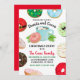Eine skurrile Sammlung von Urlaubspendern und eine Tasse heißen Kakao umrahmt diese Feier-Einladung. Weihnachtsgürtel, Weihnachtsbeleuchtung, Schneeflocken und festliche Farben, Marshmallows und Sprinklen