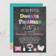 Unsere originelle, bestverkaufte, Donuts & Pajamas Chalkboard Stil Geburtstagsfeier Einladung ist die perfekte Einladung für jeden Donuts und Pjama-Themenabend. Unser Design umfasst einen Chalkboard-Hintergrund, eine Mischung aus lustigen Musterbriefen wie Polka-Punkten, Streifen und Zickzack, sonnigen Hausschuhen, einen Stapel Donuts, Milchflasche und ein rosa Zickzack Kissen, das mit dem Monogramm oder Alter Ihres Kindes individuell angepasst werden kann.