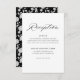 Ein minimalistisches elegantes Skriptdesign in Schwarz-Weiß-Farbe. Ideal für Hochzeiten oder besondere Empfang. Die Rückseite weist ein wahlweise schwarz-weißes romantisches schwarz-weißes Blumenmuster auf.